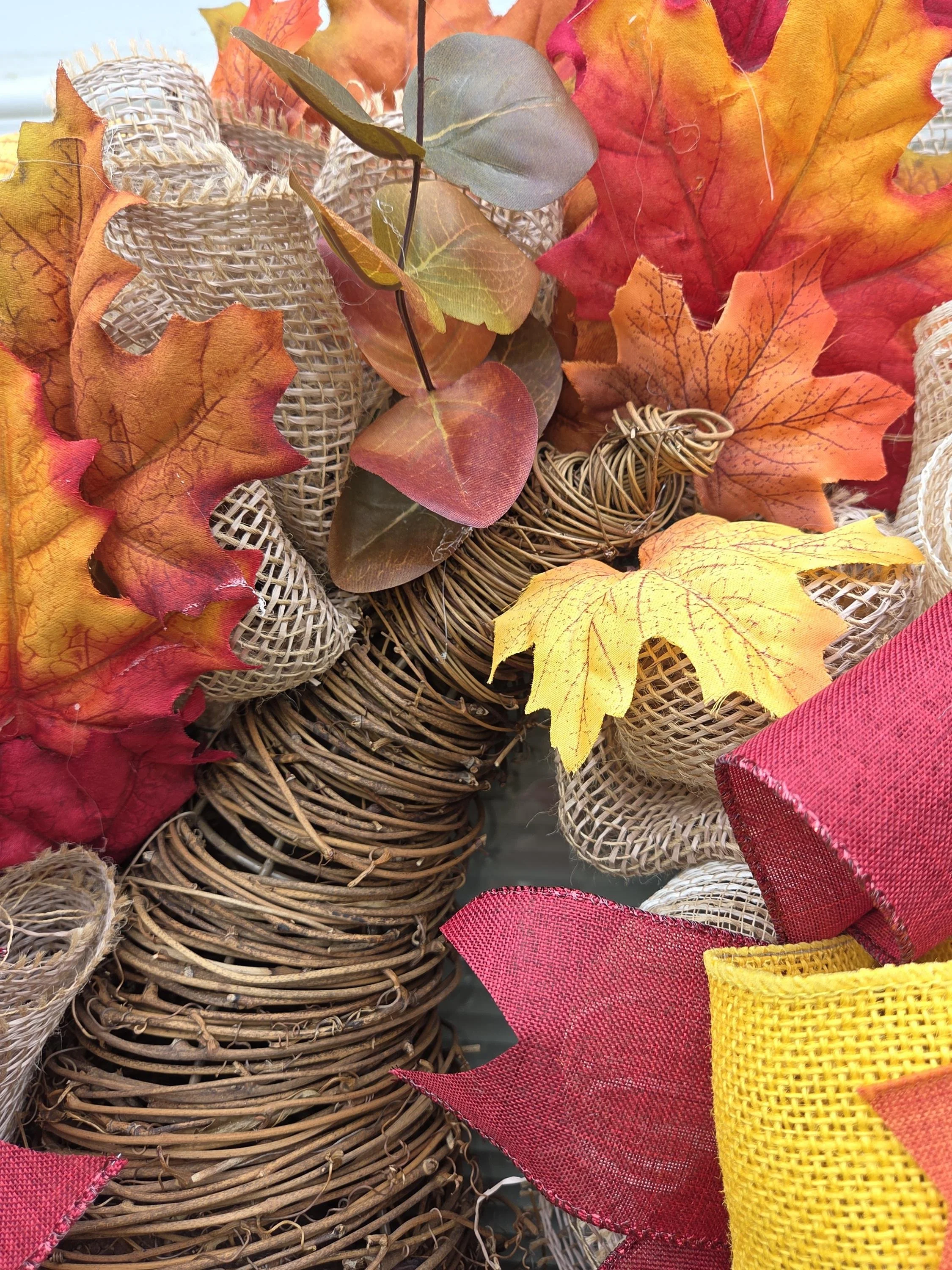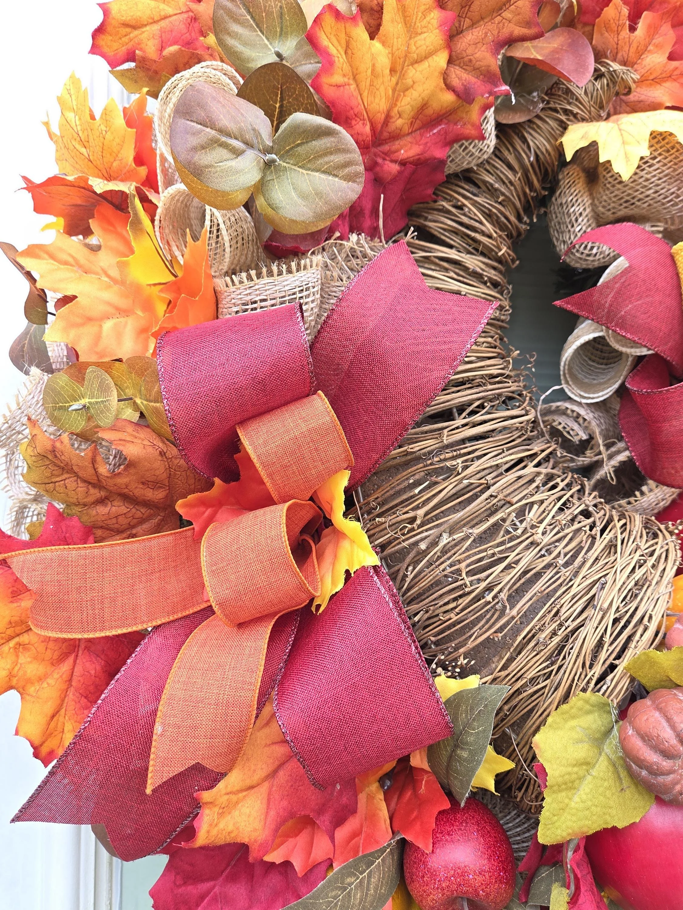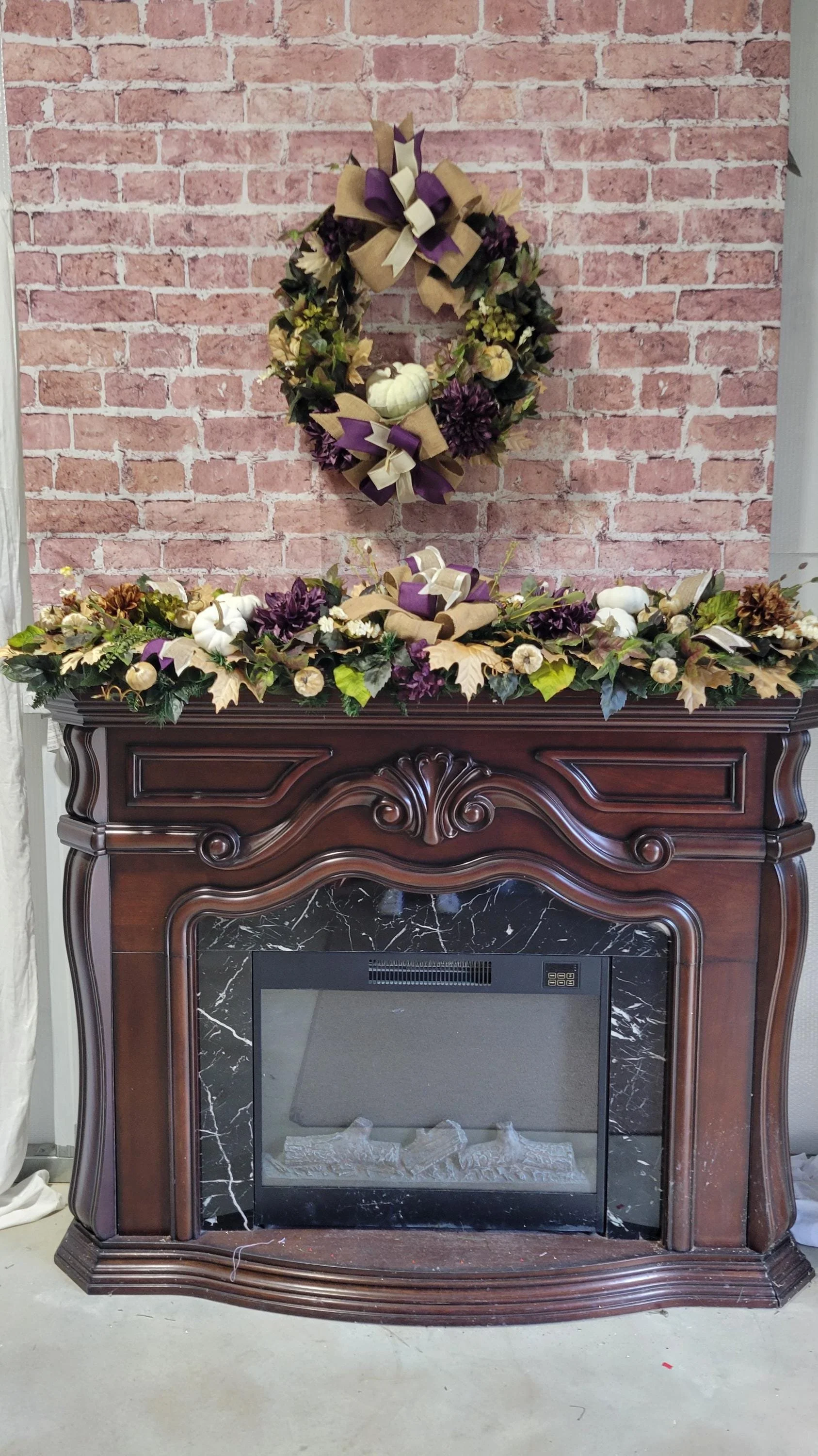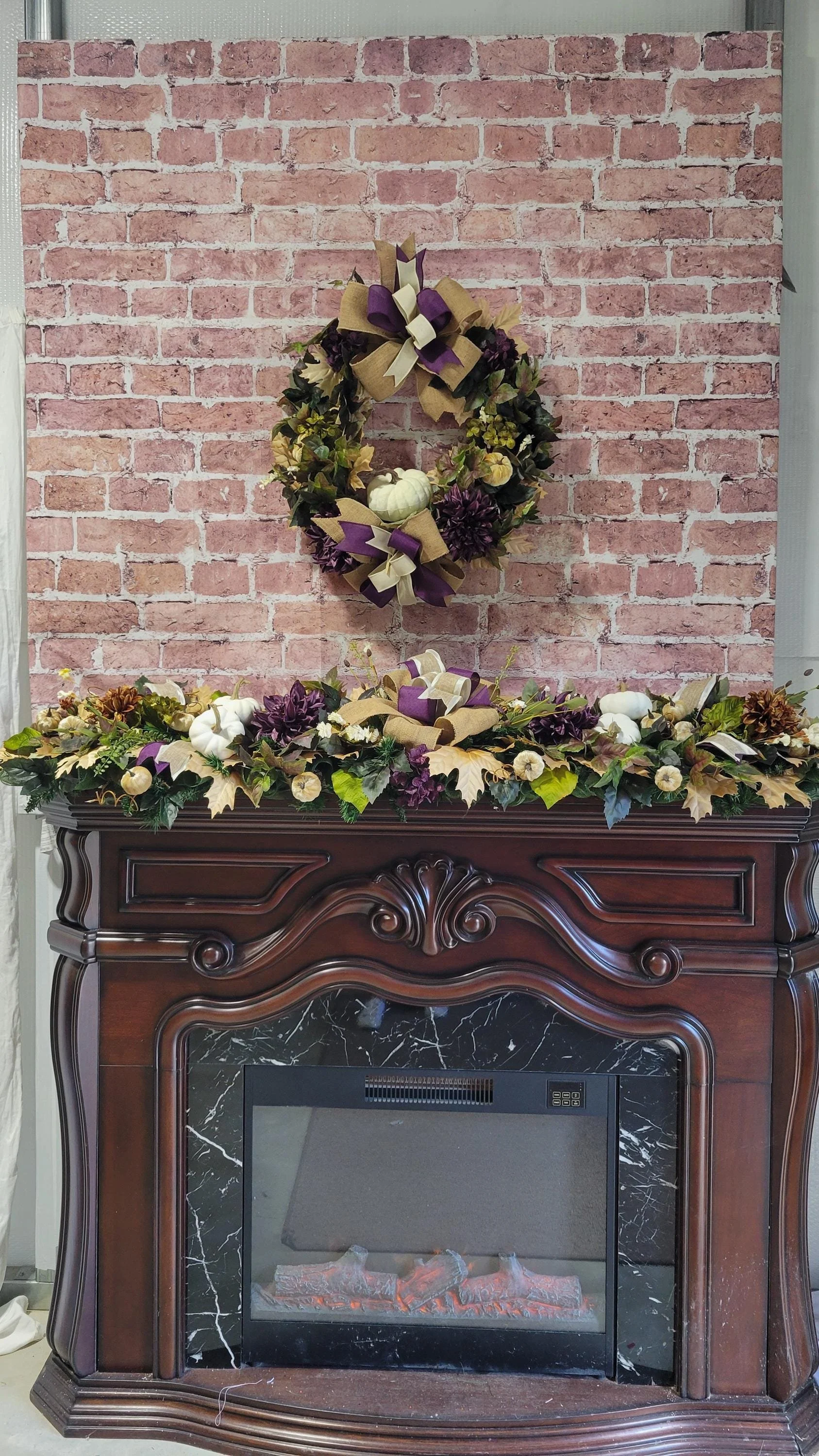 Fall 18" Grapevine Wreath, complemented by a matching garland. This versatile set can be used on a fireplace mantel,or as a centerpiece