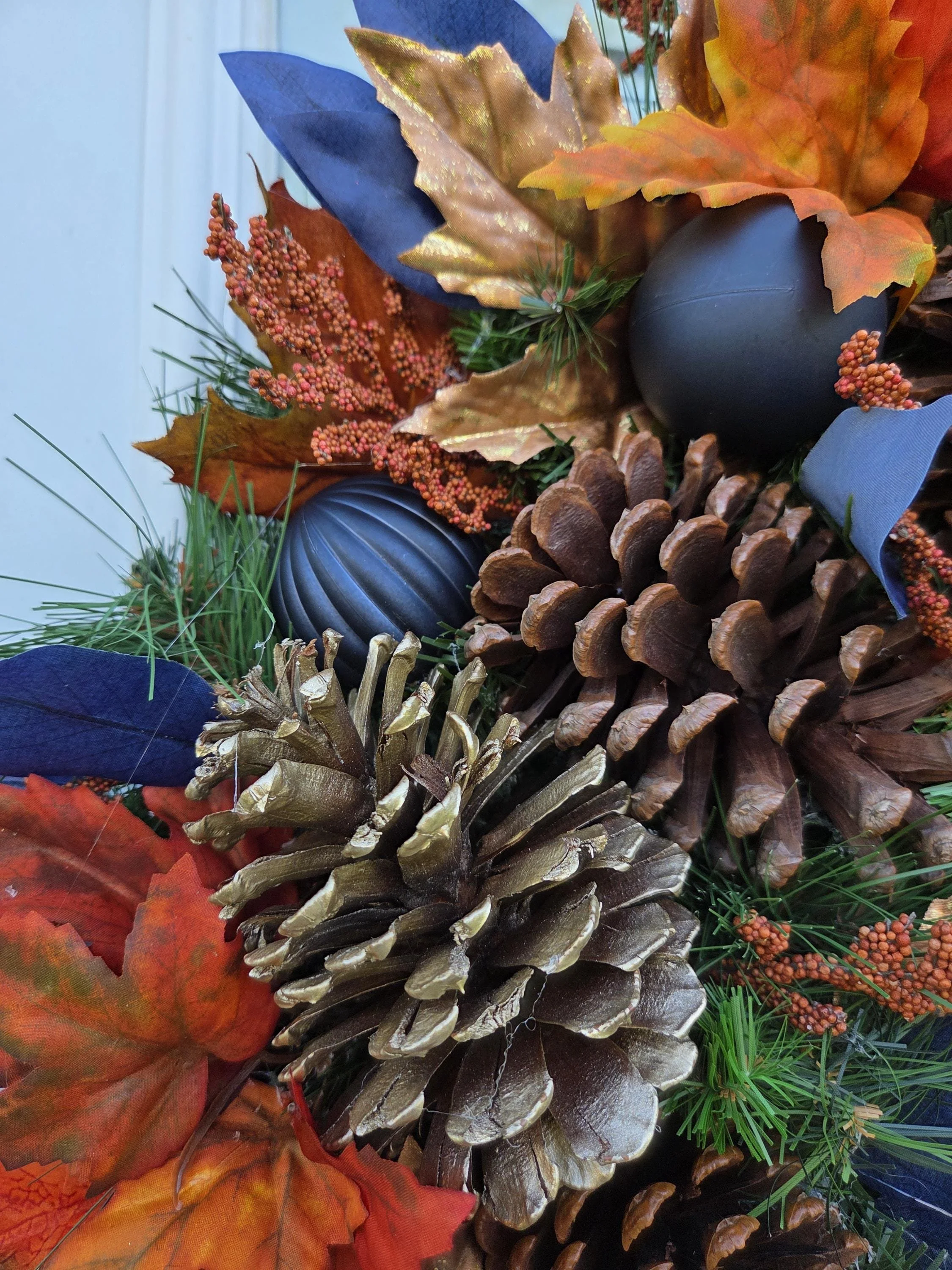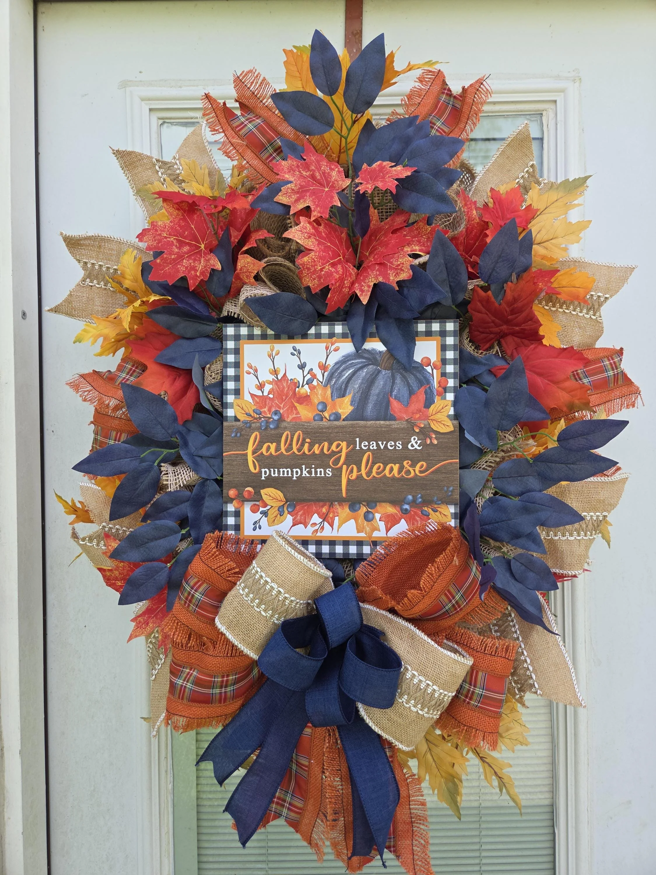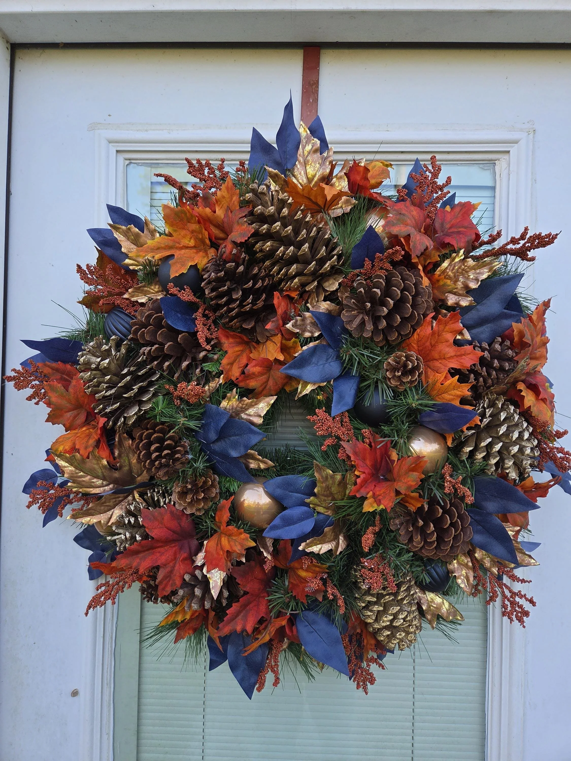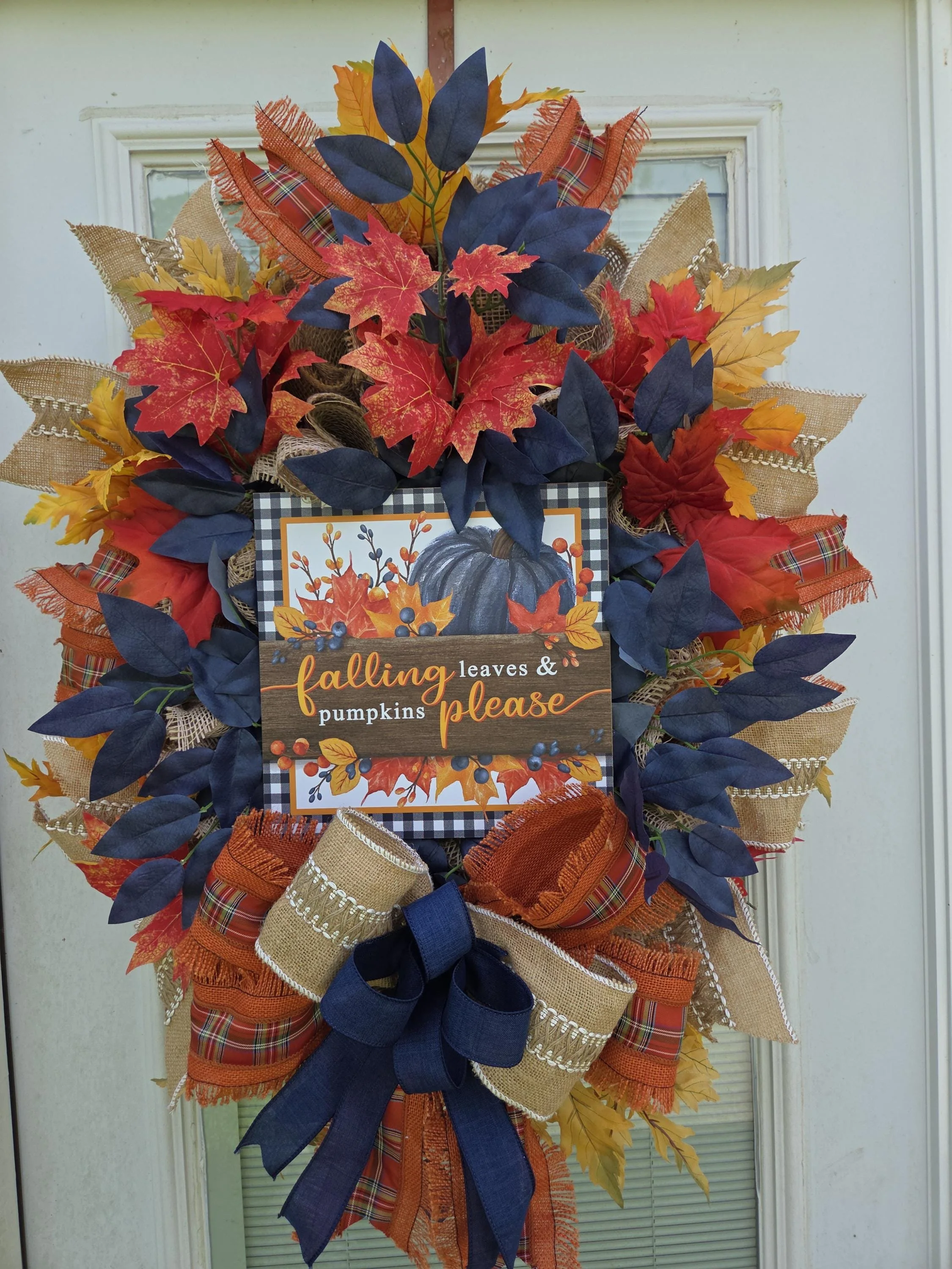 Fall wreath, Pumpkin wreath, Fall doorhanger, Fall doordecor, fall swag, designer fall wreath, Fall front door wreath, Navy blue fall wreath