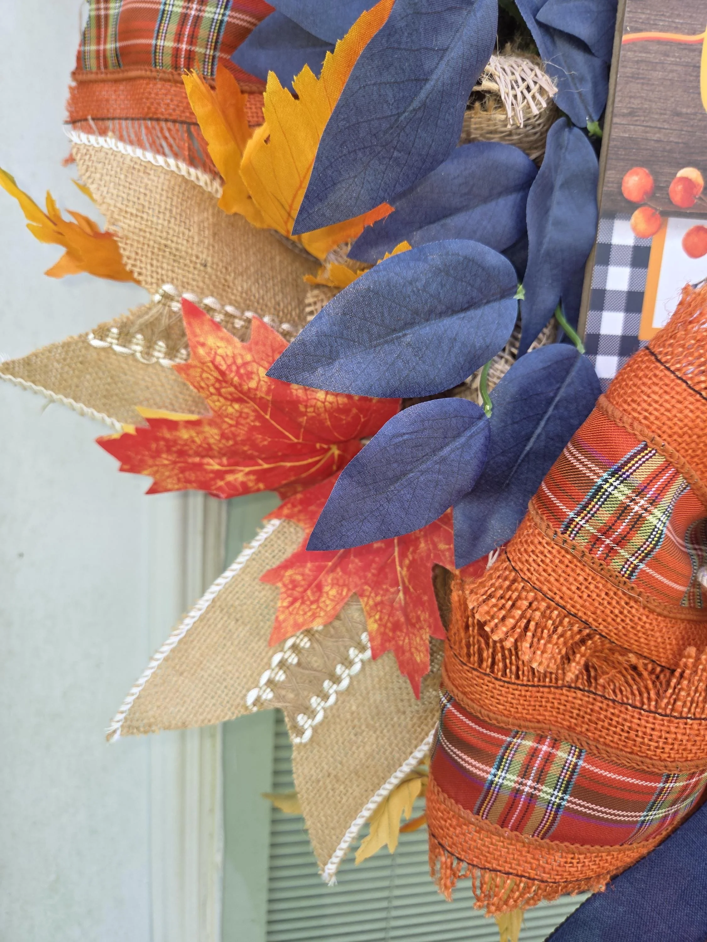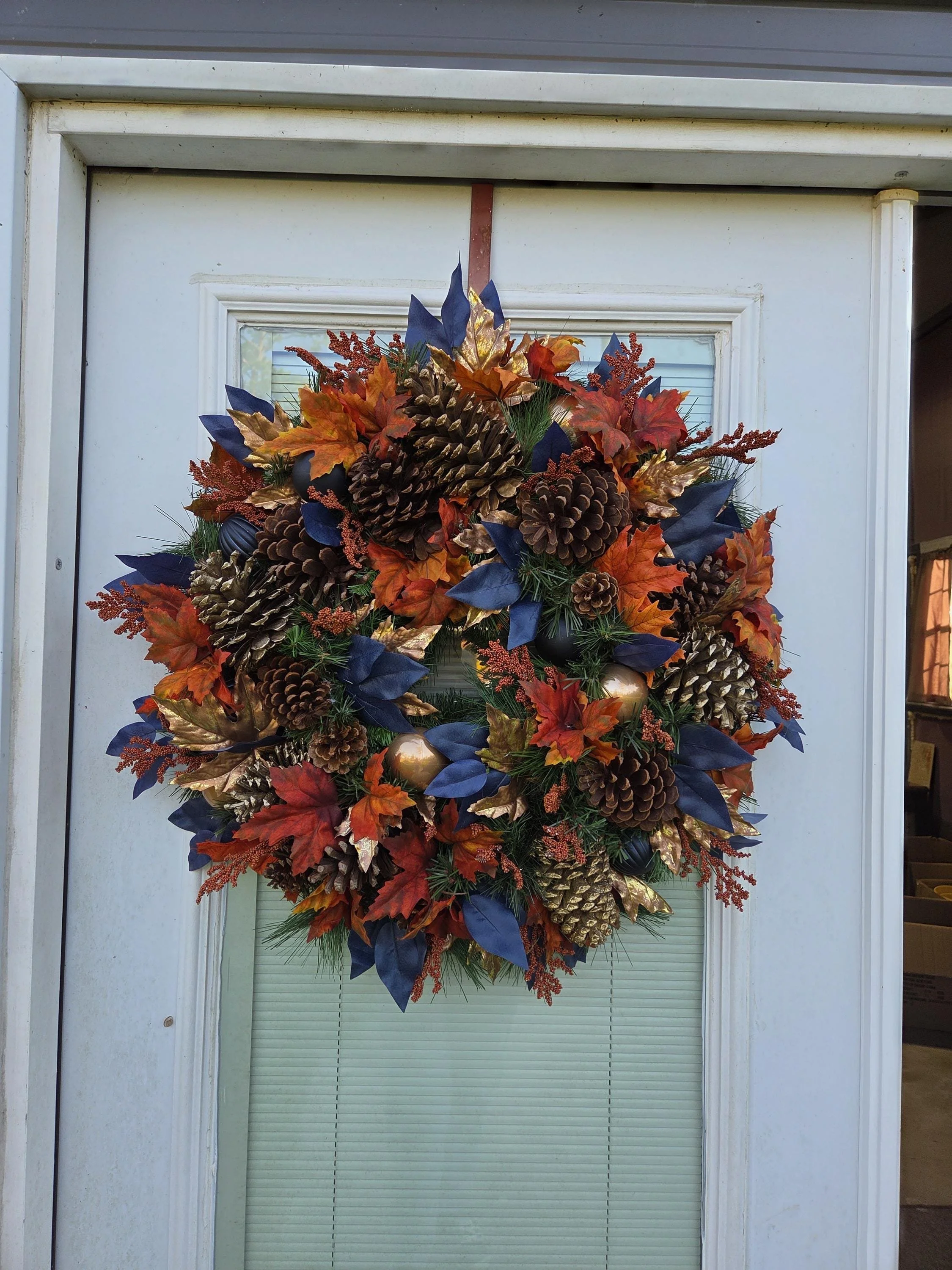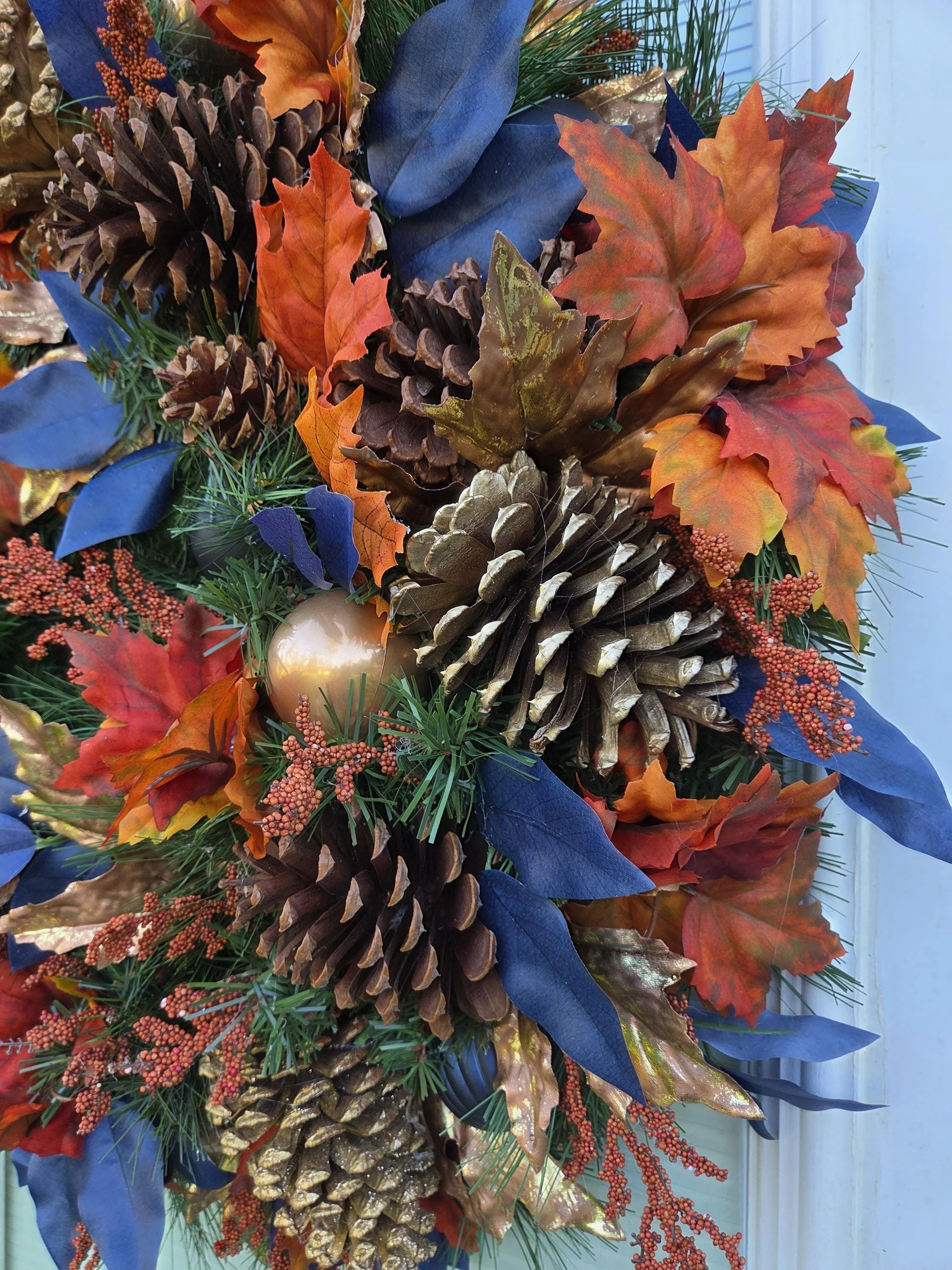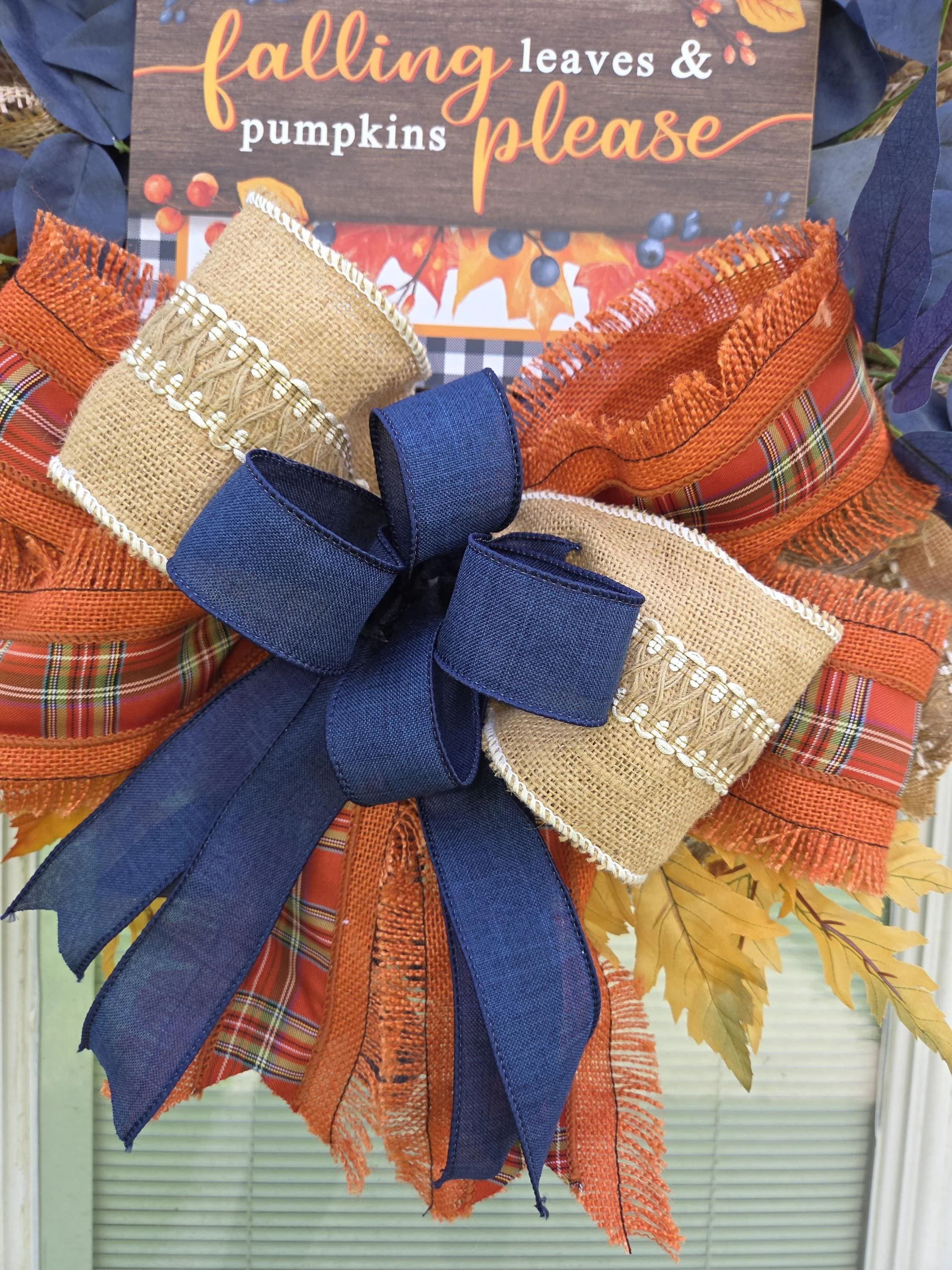 Fall wreath, Pumpkin wreath, Fall doorhanger, Fall doordecor, fall swag, designer fall wreath, Fall front door wreath, Navy blue fall wreath