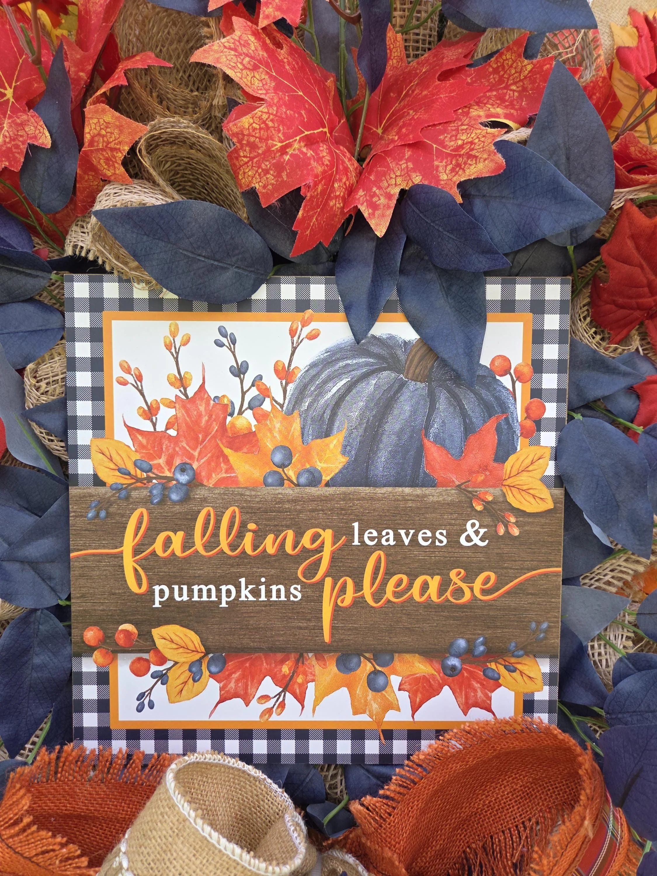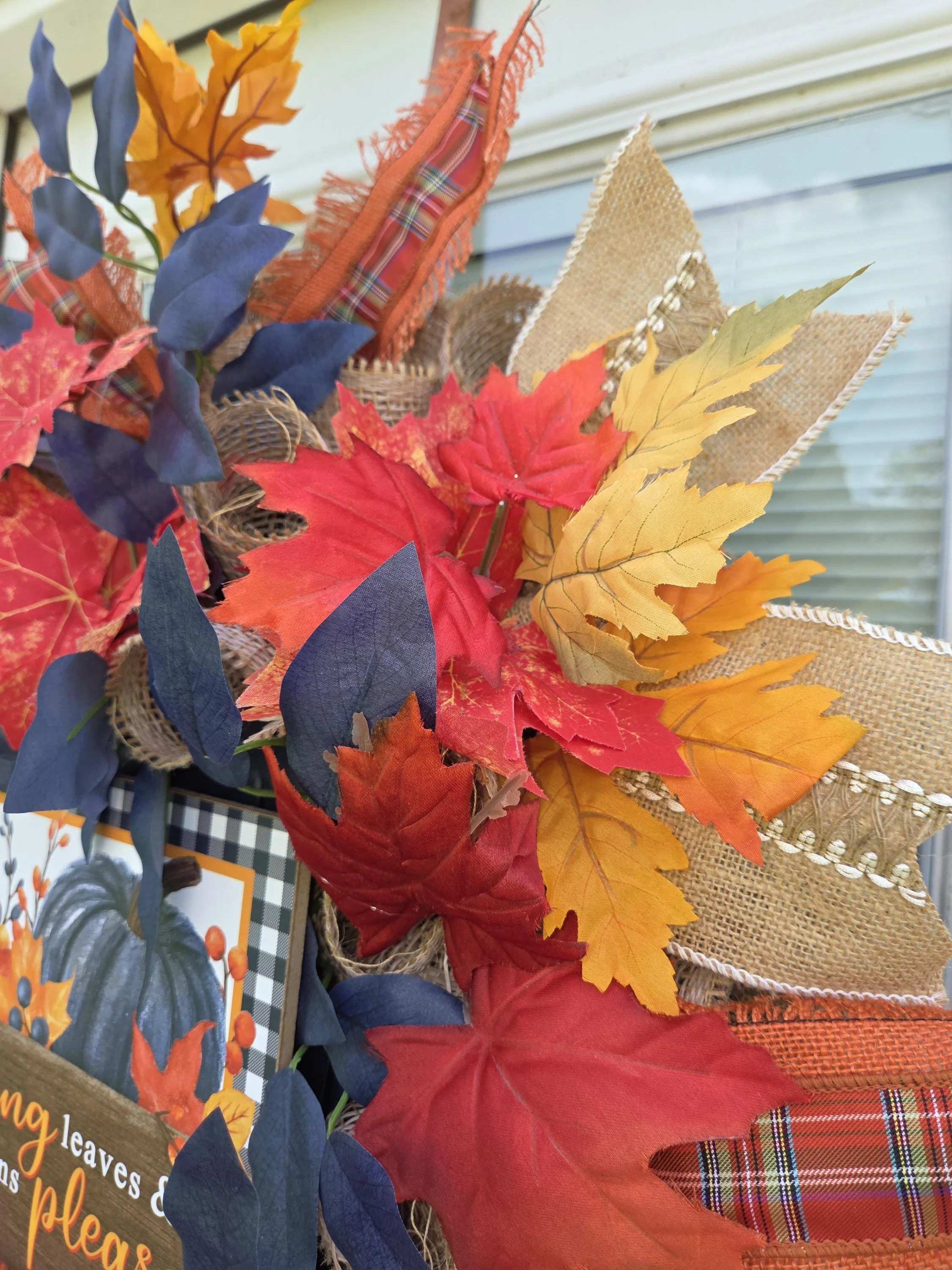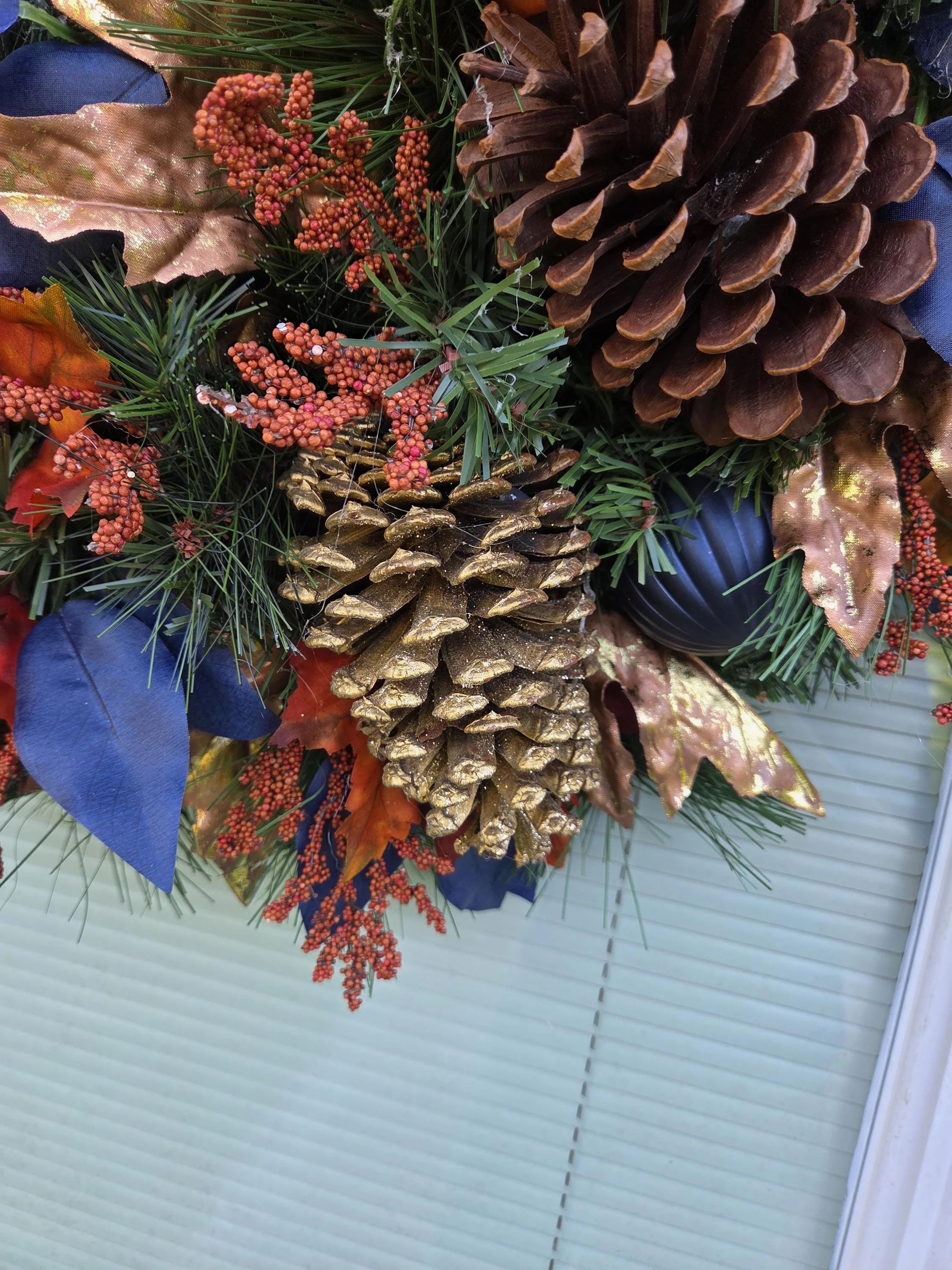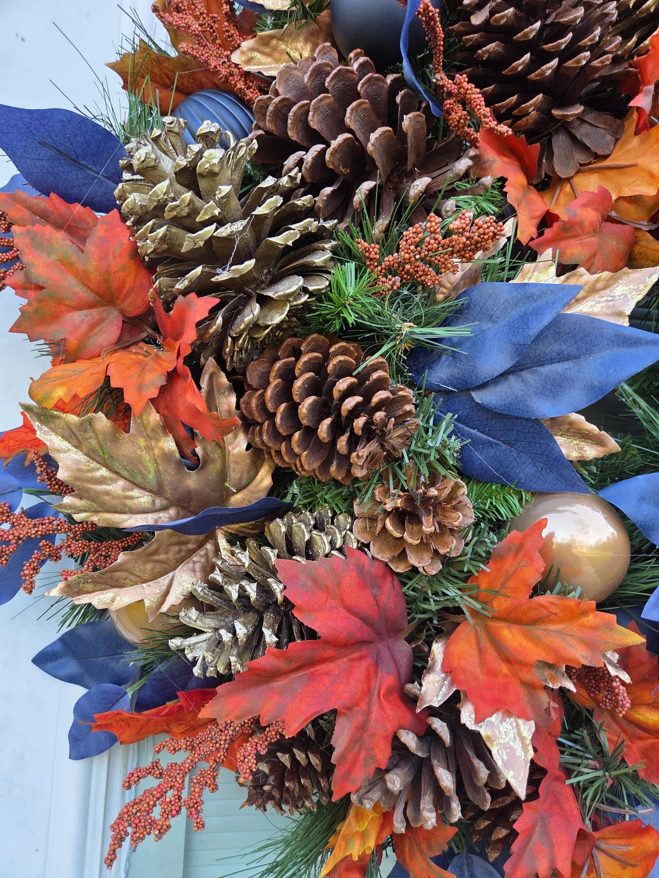 Fall wreath, Pumpkin wreath, Fall doorhanger, Fall doordecor, fall swag, designer fall wreath, Fall front door wreath, Navy blue fall wreath