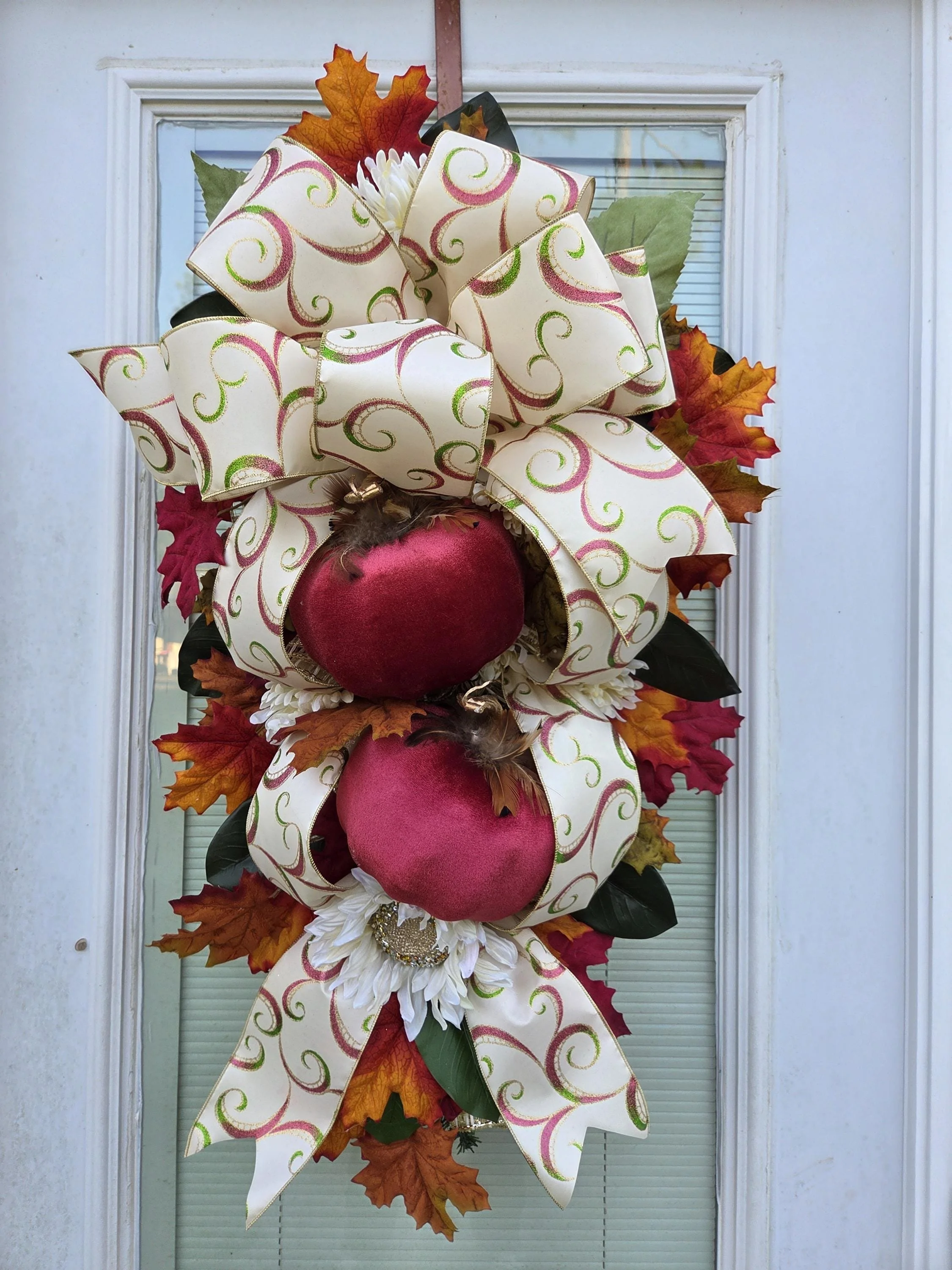 Fall swag,Pumpkin swag, Swag with pumpkins, Fall wreath, pumpkin wreath, designer fall swag, Pink fall swag, elegant fall wreath, fall decor