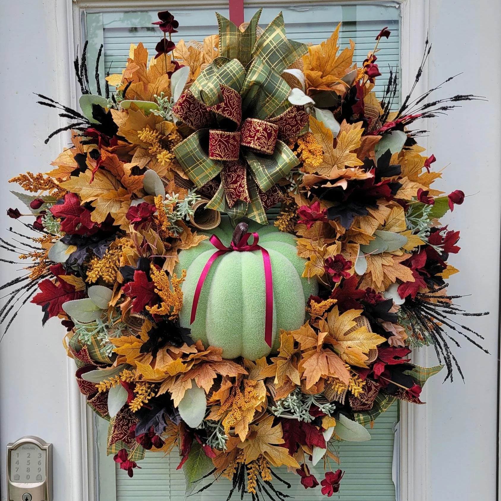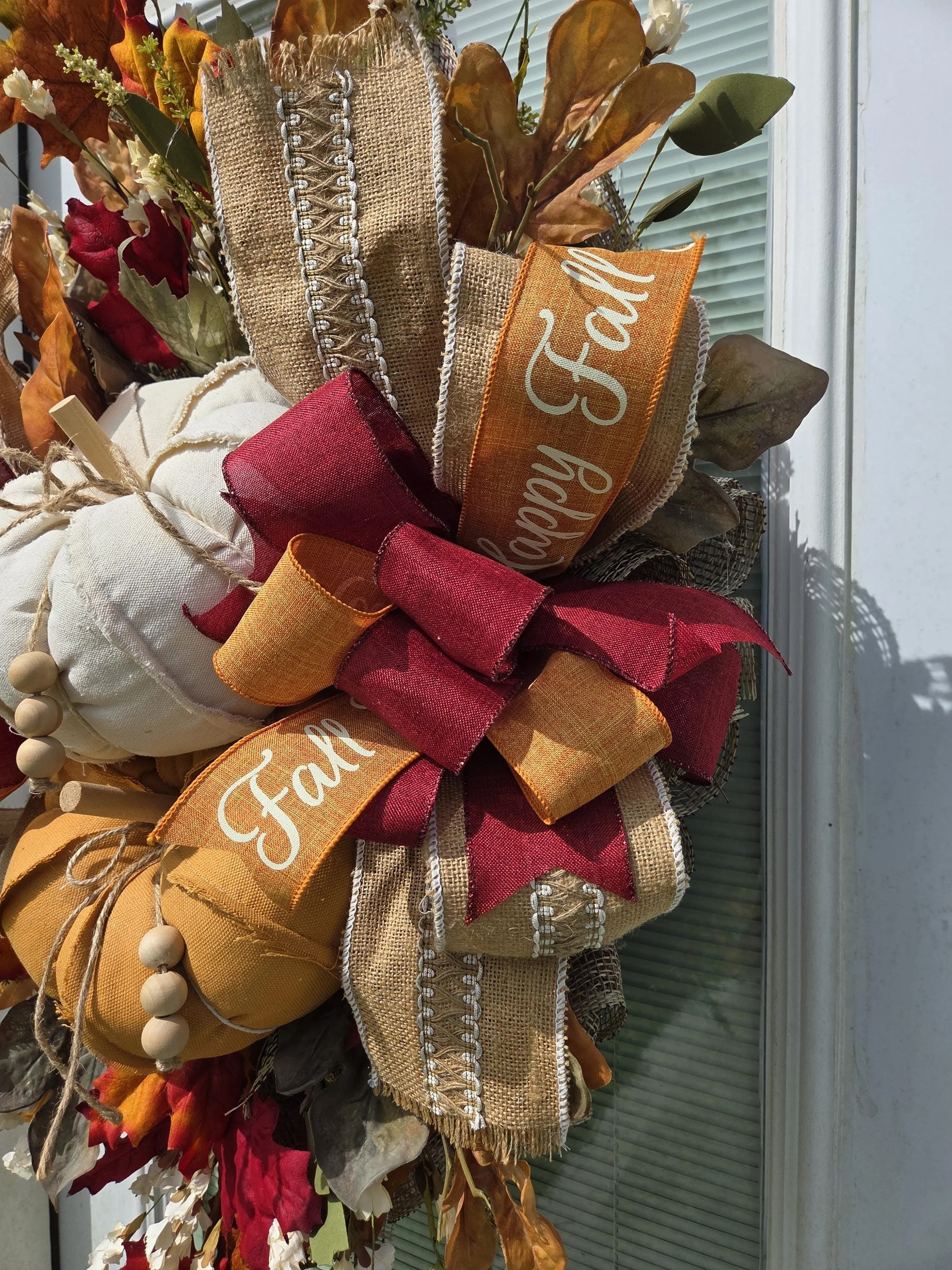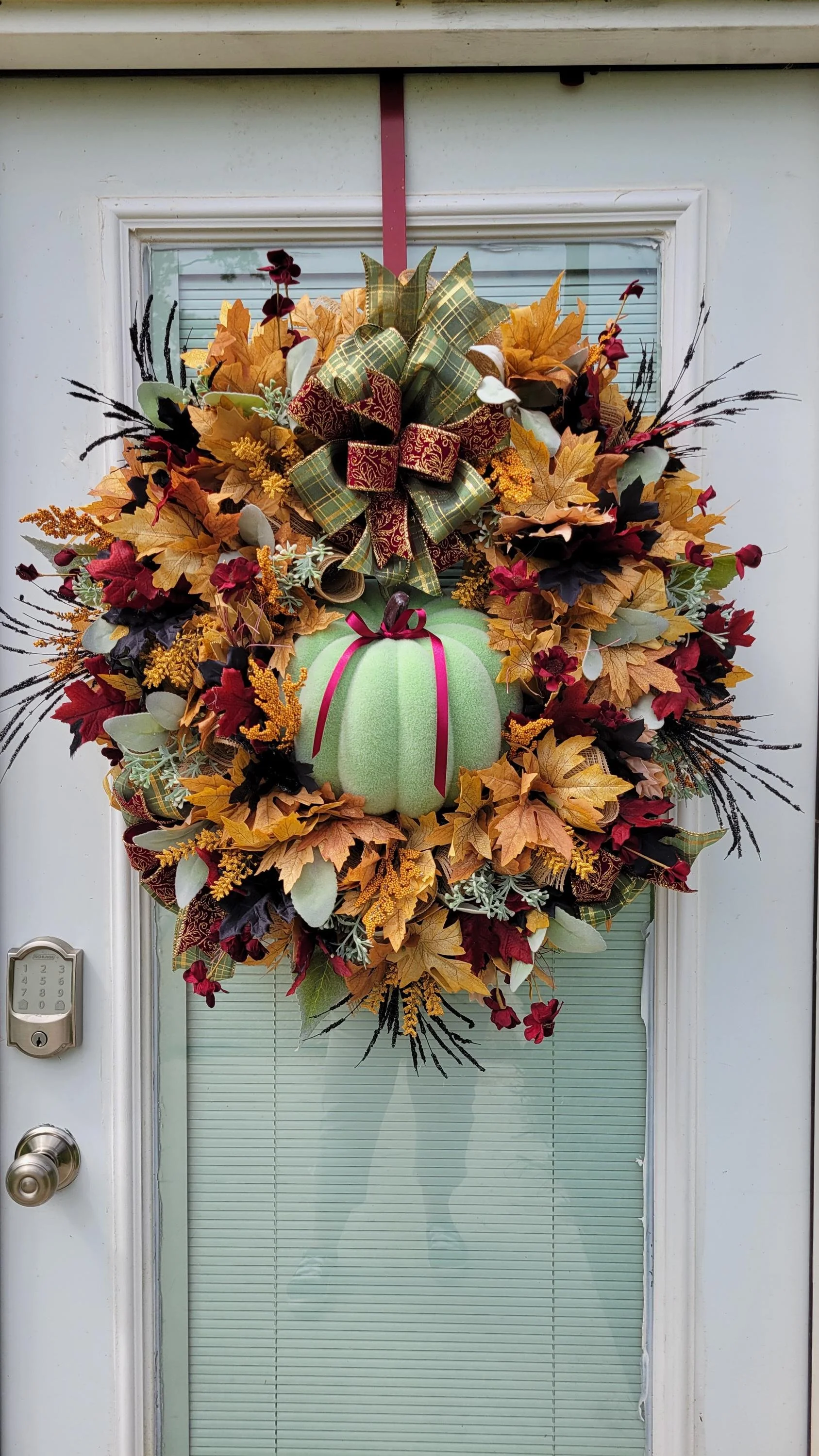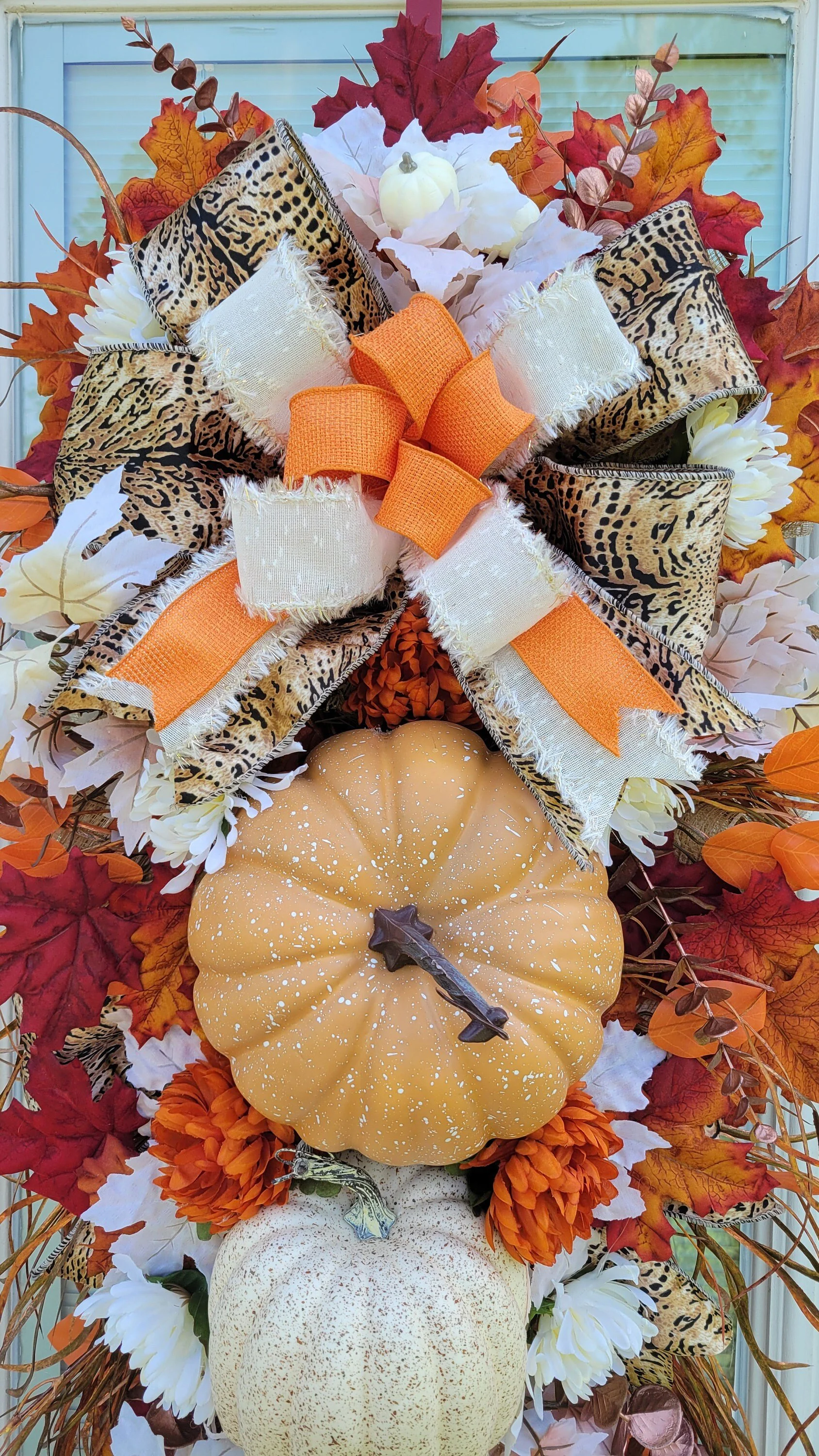 Fall wreath, Pumpkin wreath, doorhanger, Fall doordecor, fall swag, designer fall wreath, front door wreath