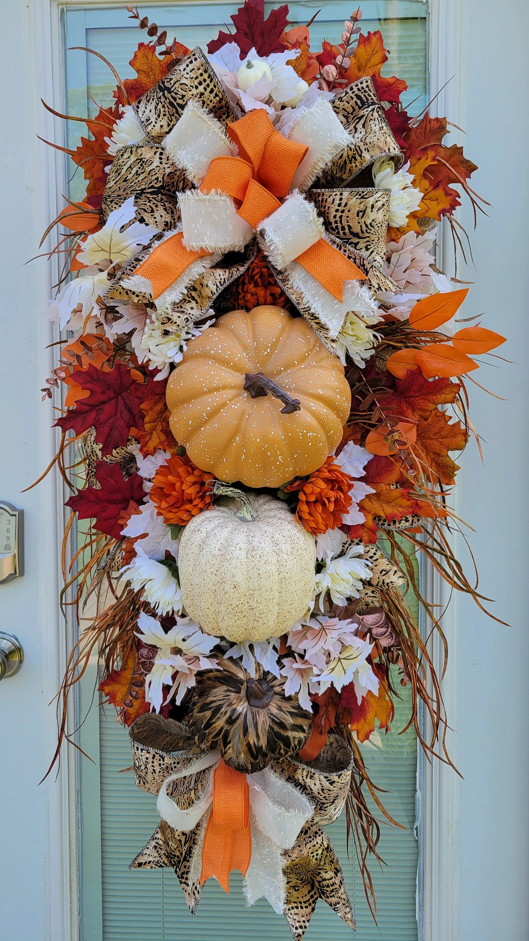 Large fall swag,Pumpkin swag, Pumpkin doorhanger, Fall doorhanger, pumpkin wreath, designer fall swag,