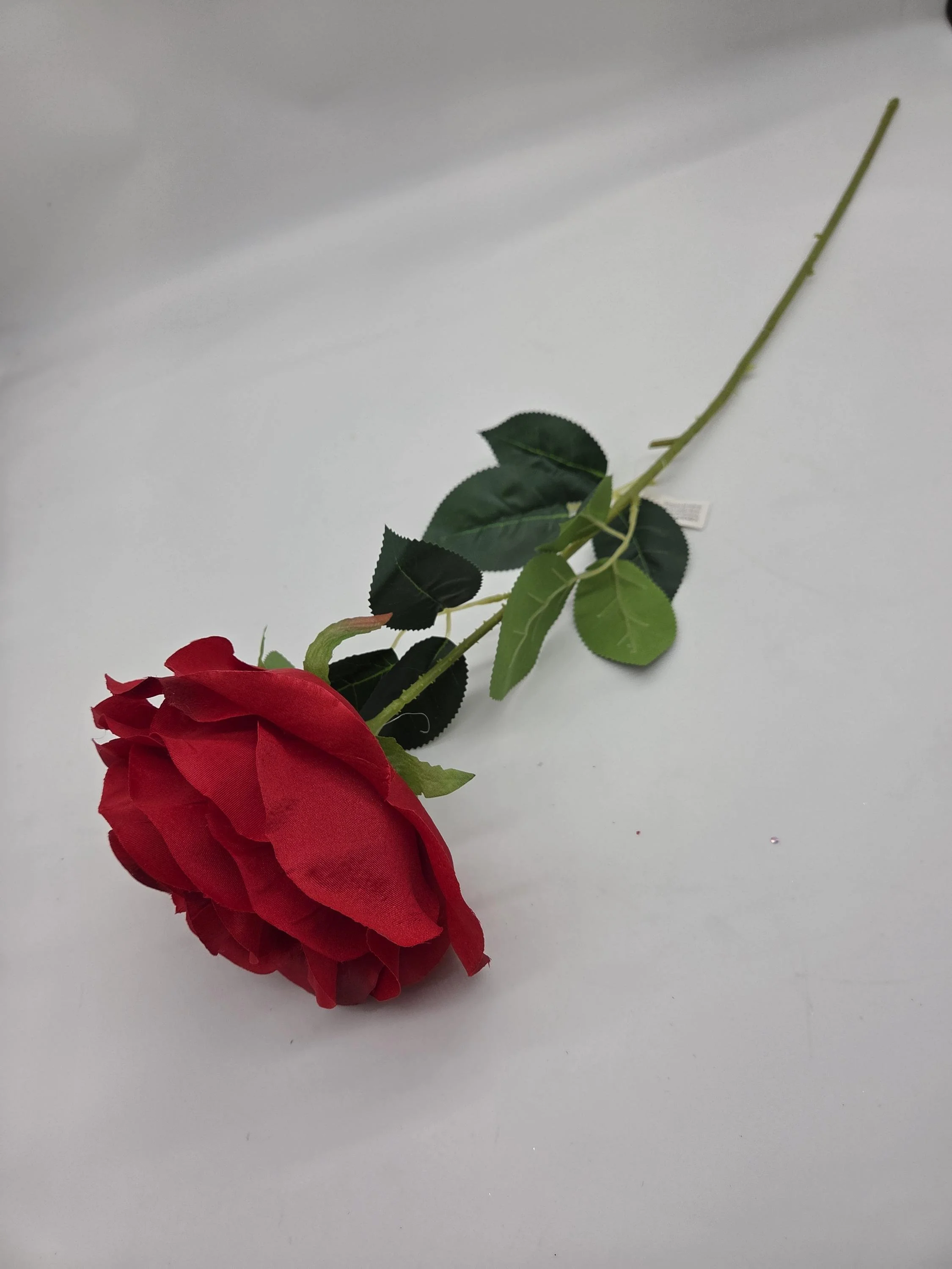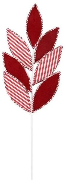 27"L Red White Velvet Stripe Leaf Spray