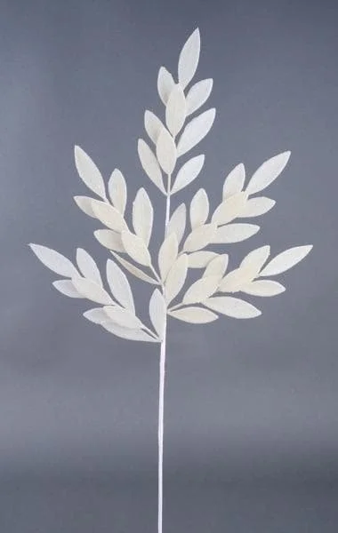32" Glitter bay leaf spray white