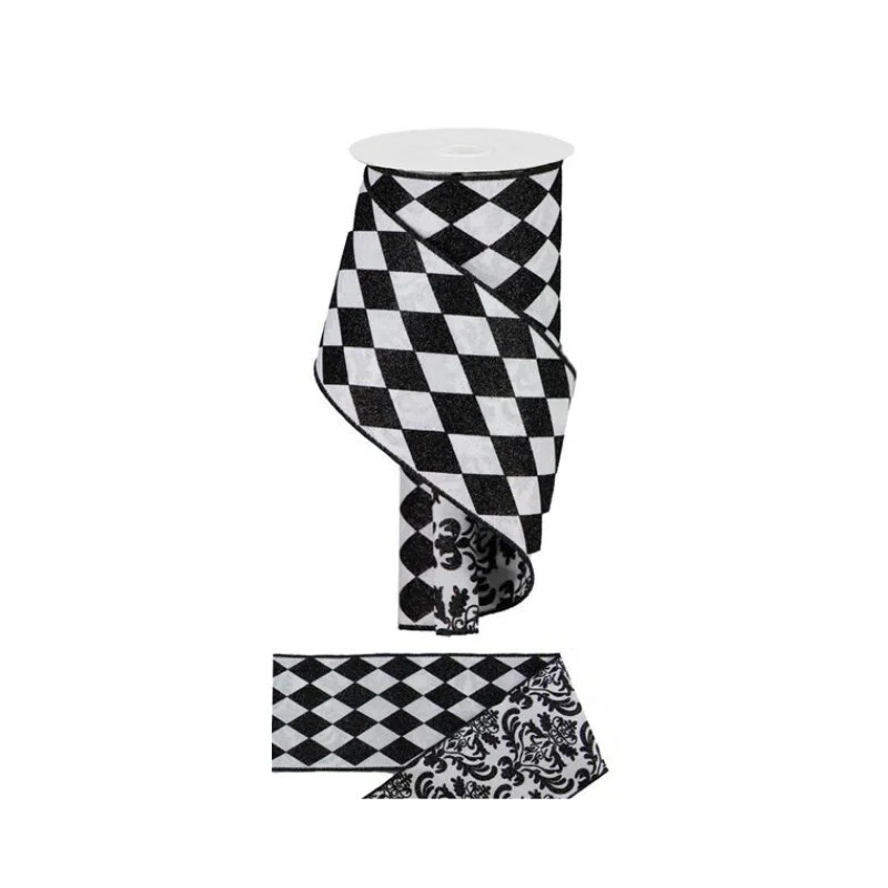 2.5" Black and white Gingham Wired Ribbon, Gingham Ribbon, Black and white wired ribbon, Christmas Ribbon, Farmhouse ribbon