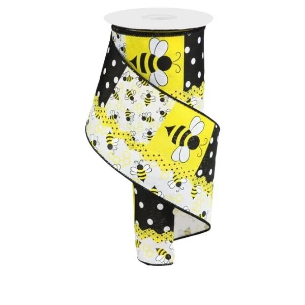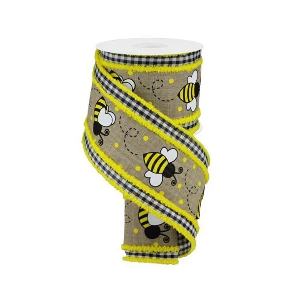 4"X10yd 2 In 1 Bumblebee Gingham/Drift Ribbon