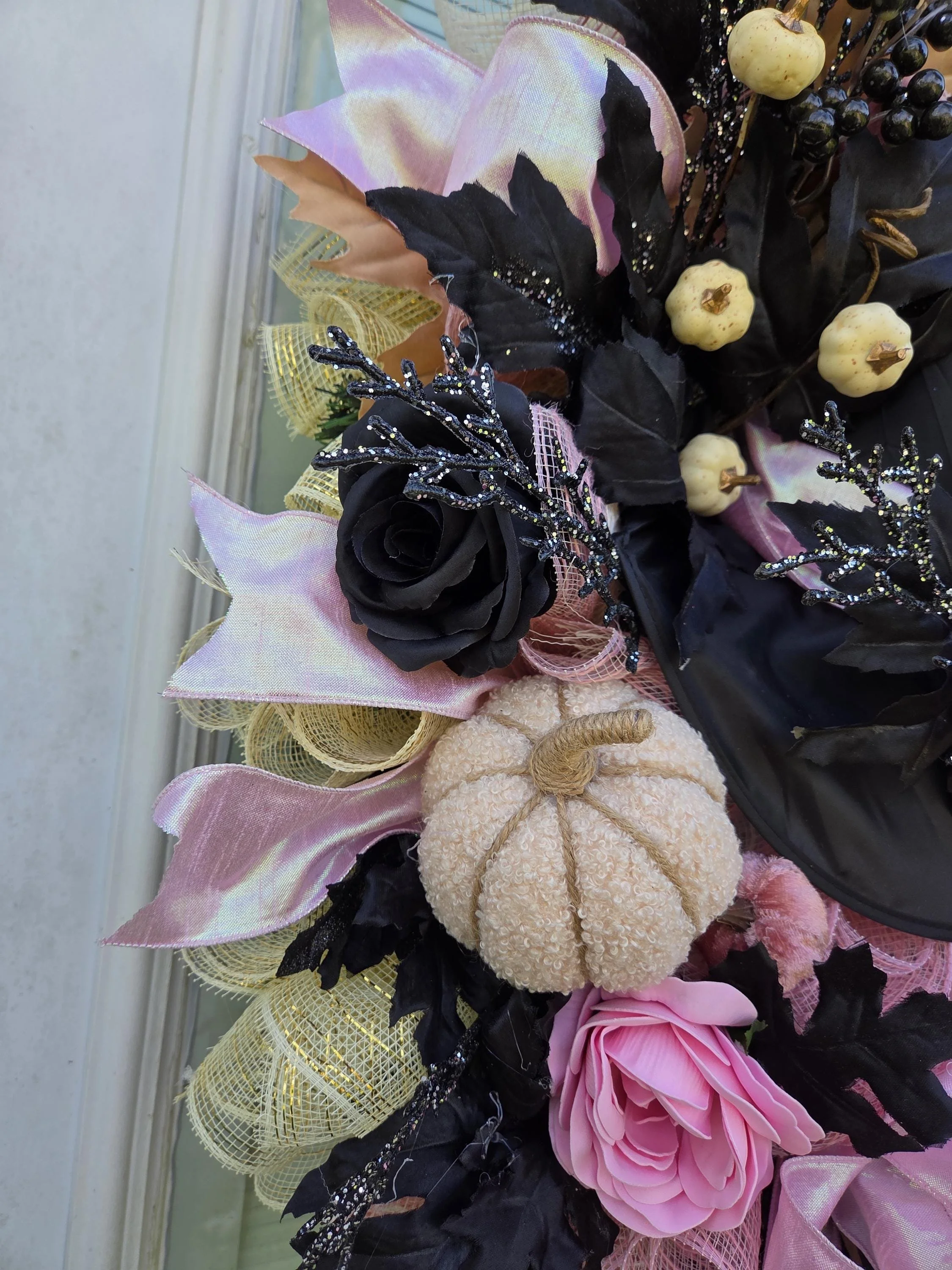 Fall swag,Pumpkin swag, Swag with pumpkins, Fall wreath, pumpkin wreath, designer fall swag, Pink fall swag, elegant fall wreath, fall decor